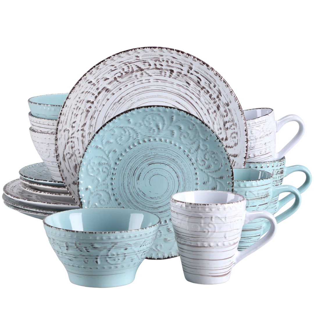 High-quality dinner set stoneware vintage look ceramic,16 pieces set with 10.75" dinner plate, 7.5" dessert plate, 800ml cereal bowl, and, 380ml mug.