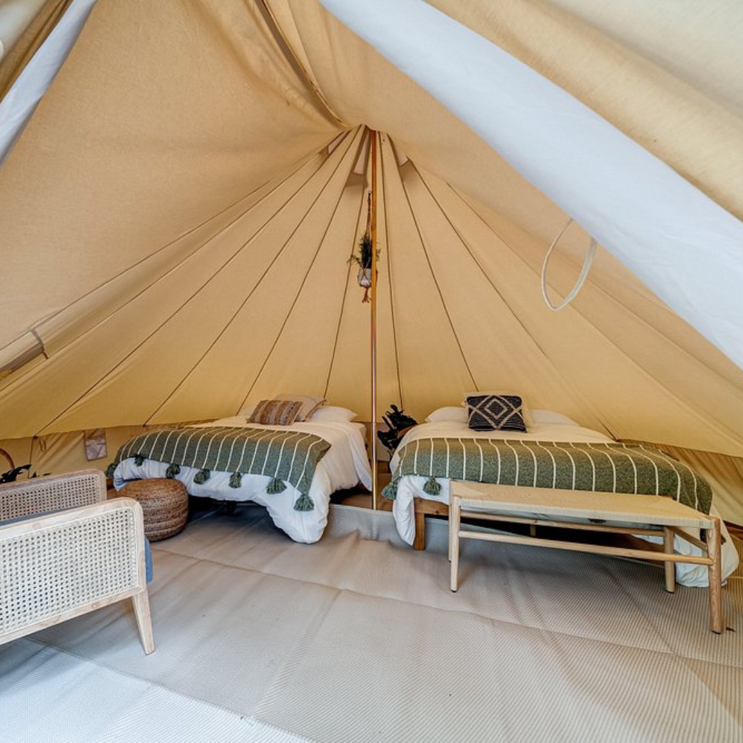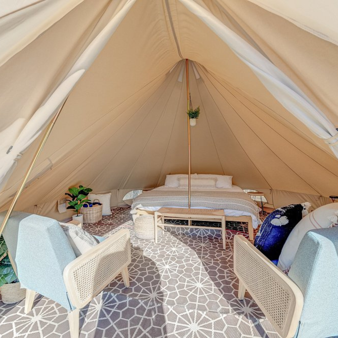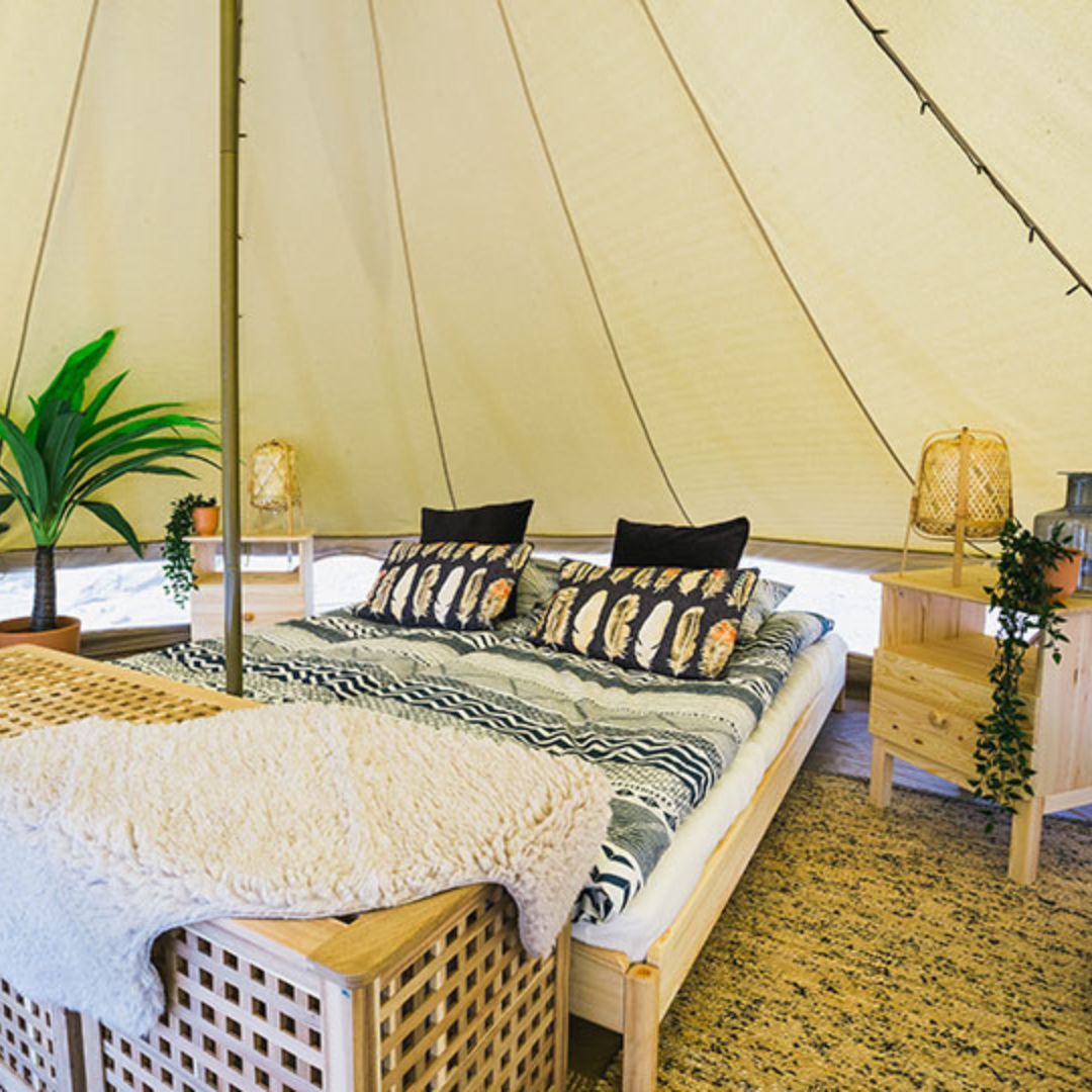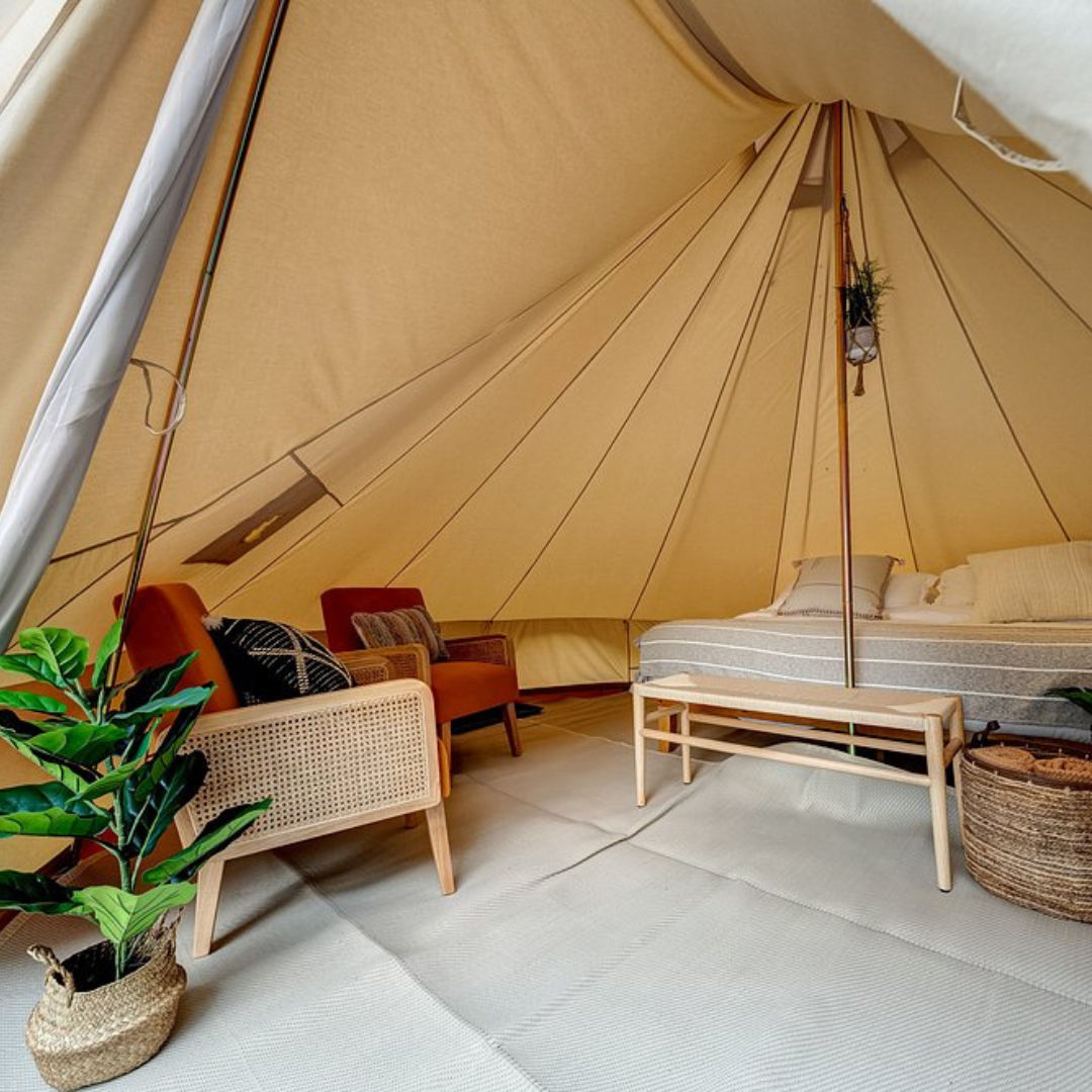 Our team provides a complete off-grid glamping setup — including premium tents, queen-size beds, lounge furniture, rugs, lighting, and high-end finishing touches. No power or water access is required. We manage delivery, installation, styling, takedown, and cleanup so you don’t have to lift a finger.
