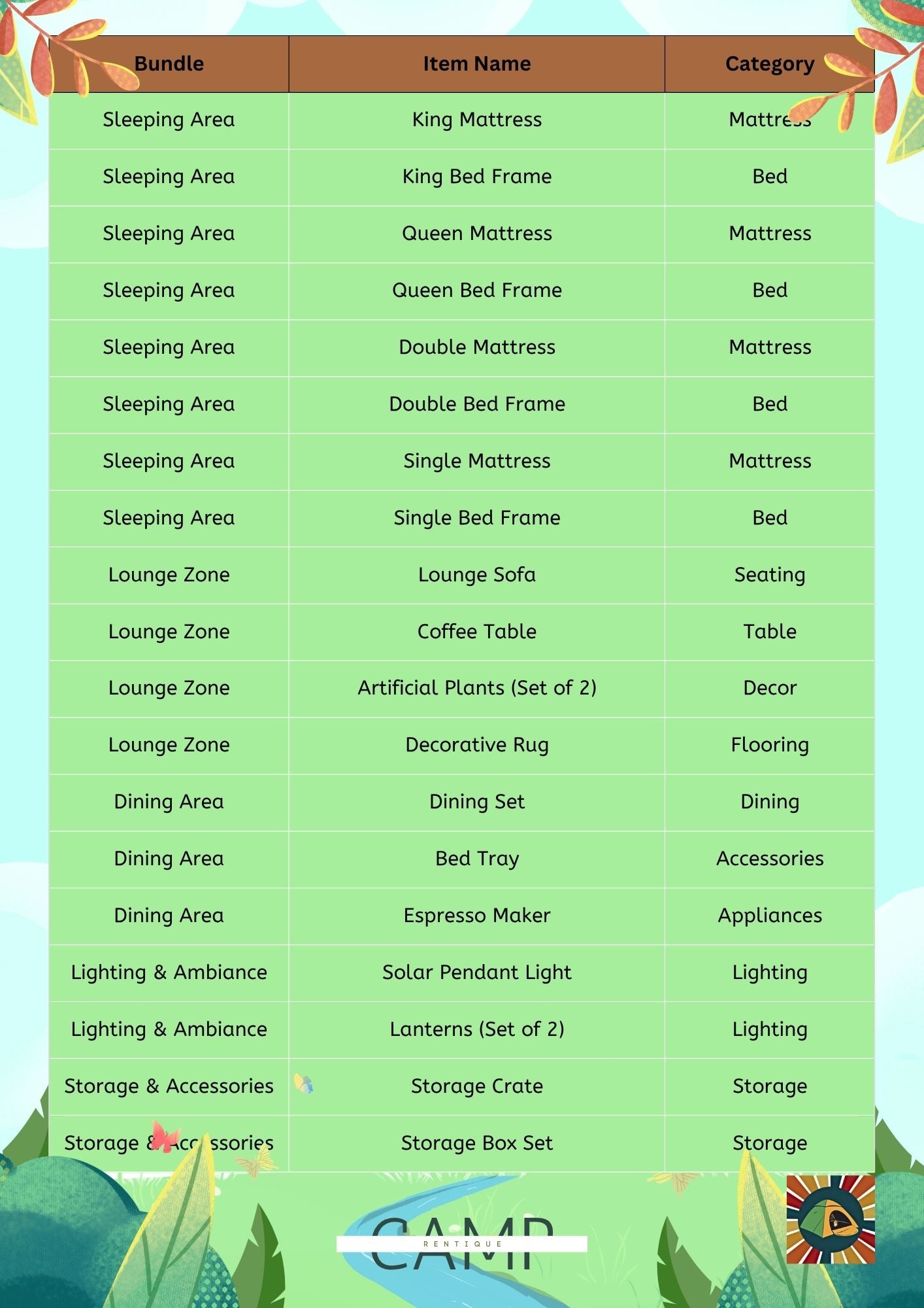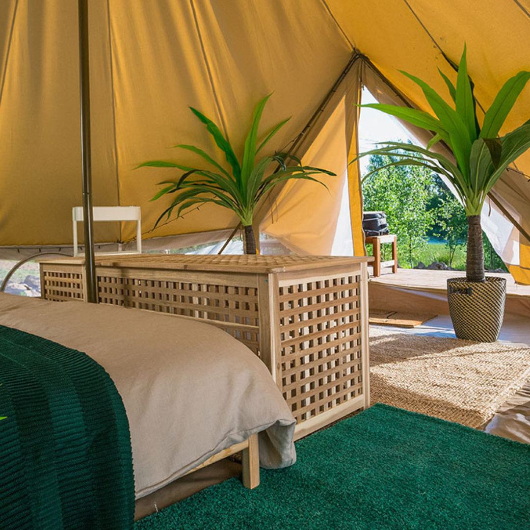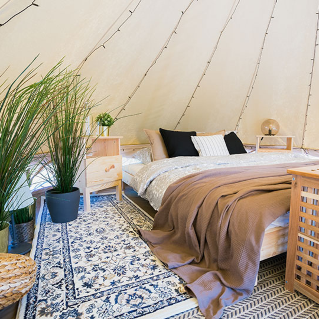 Our team provides a complete off-grid glamping setup — including premium tents, queen-size beds, lounge furniture, rugs, lighting, and high-end finishing touches. No power or water access is required. We manage delivery, installation, styling, takedown, and cleanup so you don’t have to lift a finger.
