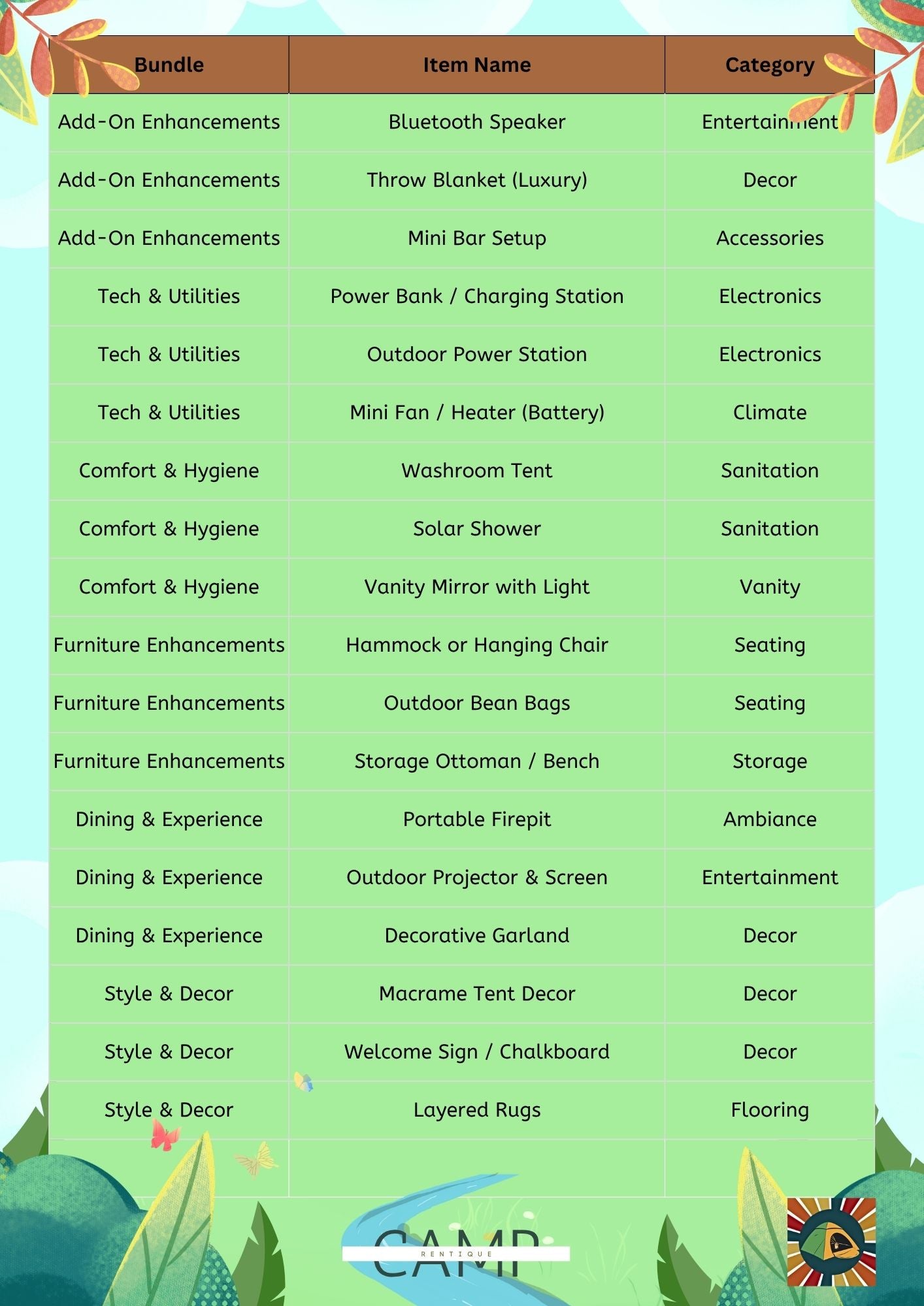 Camp Rentique offers custom quotes and business-friendly partnership models — including profit-sharing options for landowners. You supply the land, and we’ll supply the design, equipment, and even the bookings.