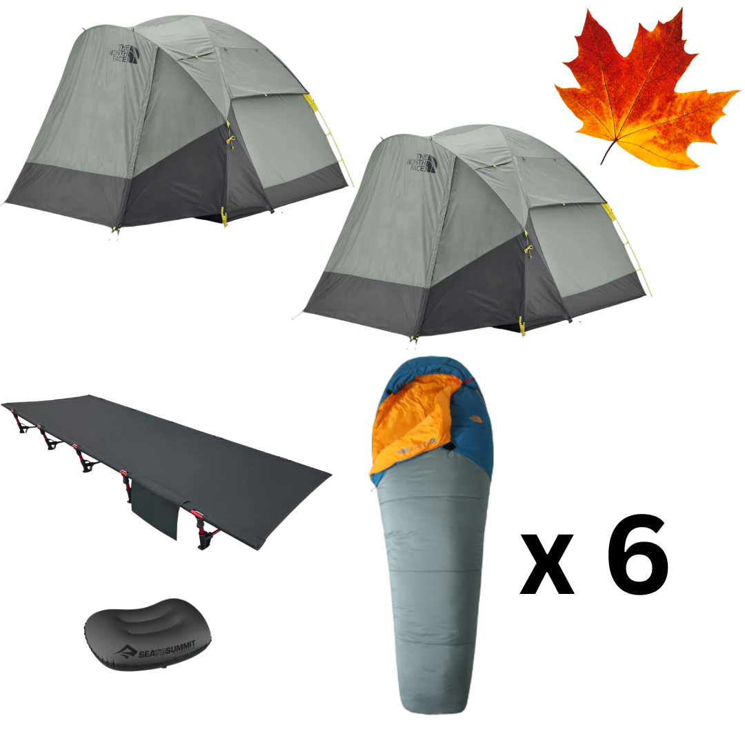 6 Warm Sleeping Bags – Rated to 0°C, -7°C, or -18°C depending on the forecast. Stay cozy even on chilly fall nights.