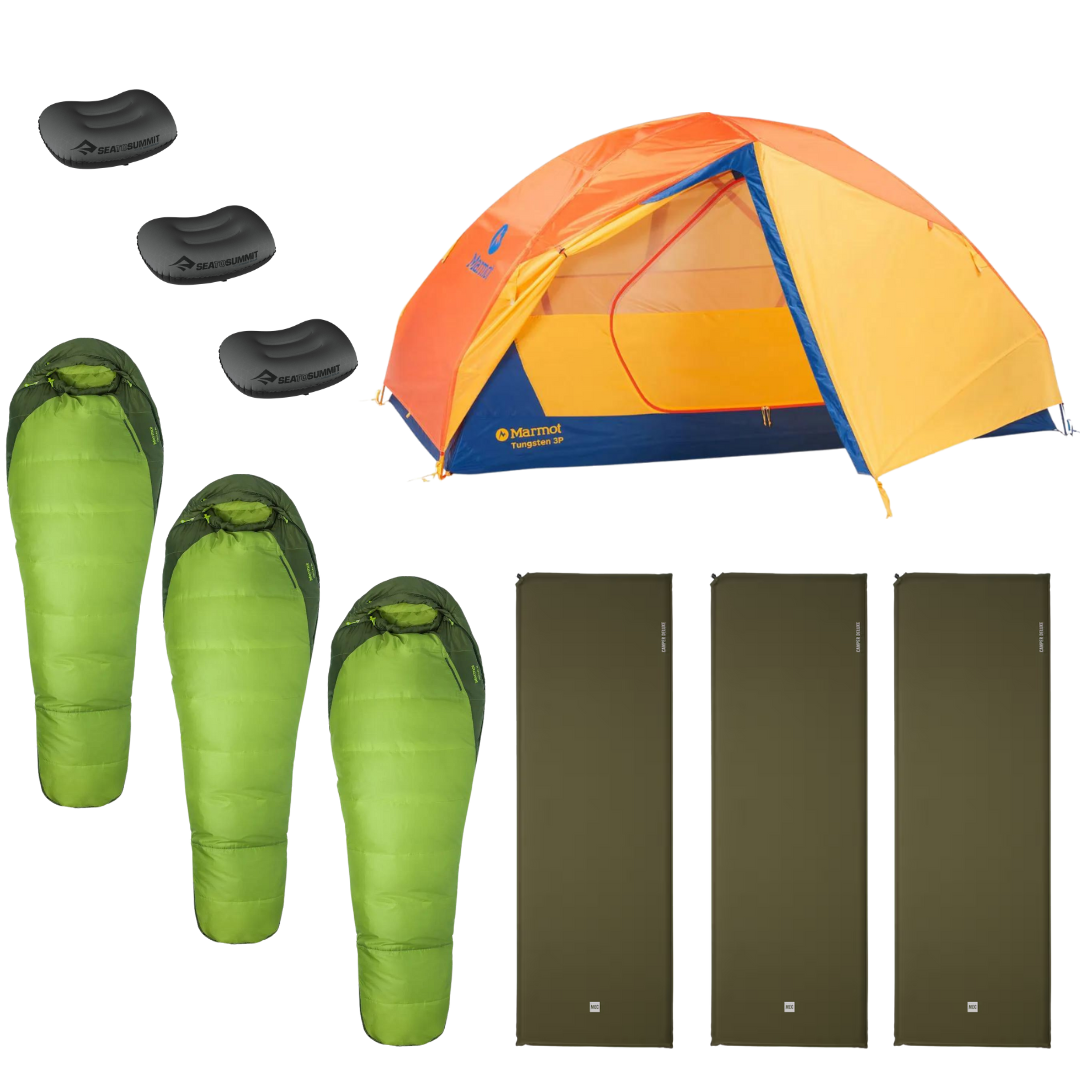 The Minimalist Trio package is our basic package for a simple camping trip. It has all you need to join a group of friends or family on a camping trip.
