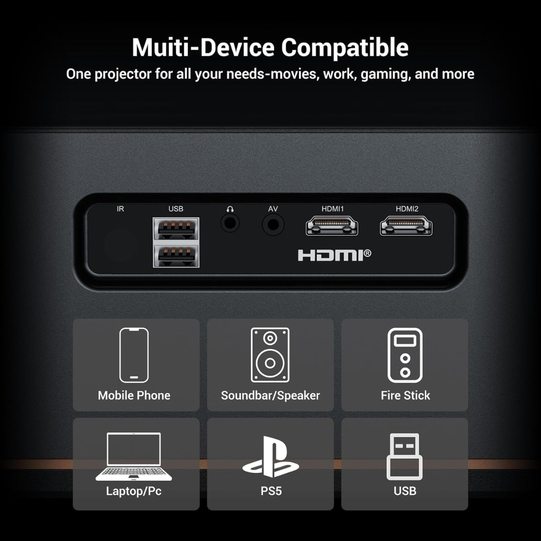 Designed specifically for evening outdoor use, the projector produces bright, sharp, large-format visuals that stay crisp across the full 20-foot screen. Fast autofocus and integrated streaming ensure easy playback of videos, slideshows, brand reels, and wedding presentations. Paired with the power station, it operates reliably for the entire duration of your event.