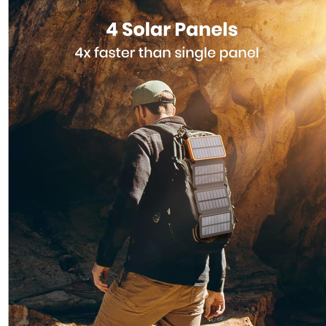 4 Foldable Solar Panels – 4× more efficient than single-panel chargers, easy to carry.