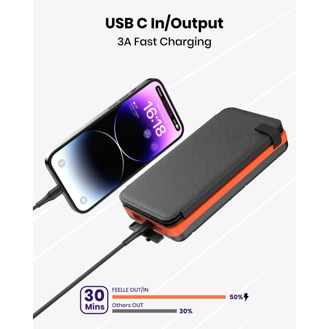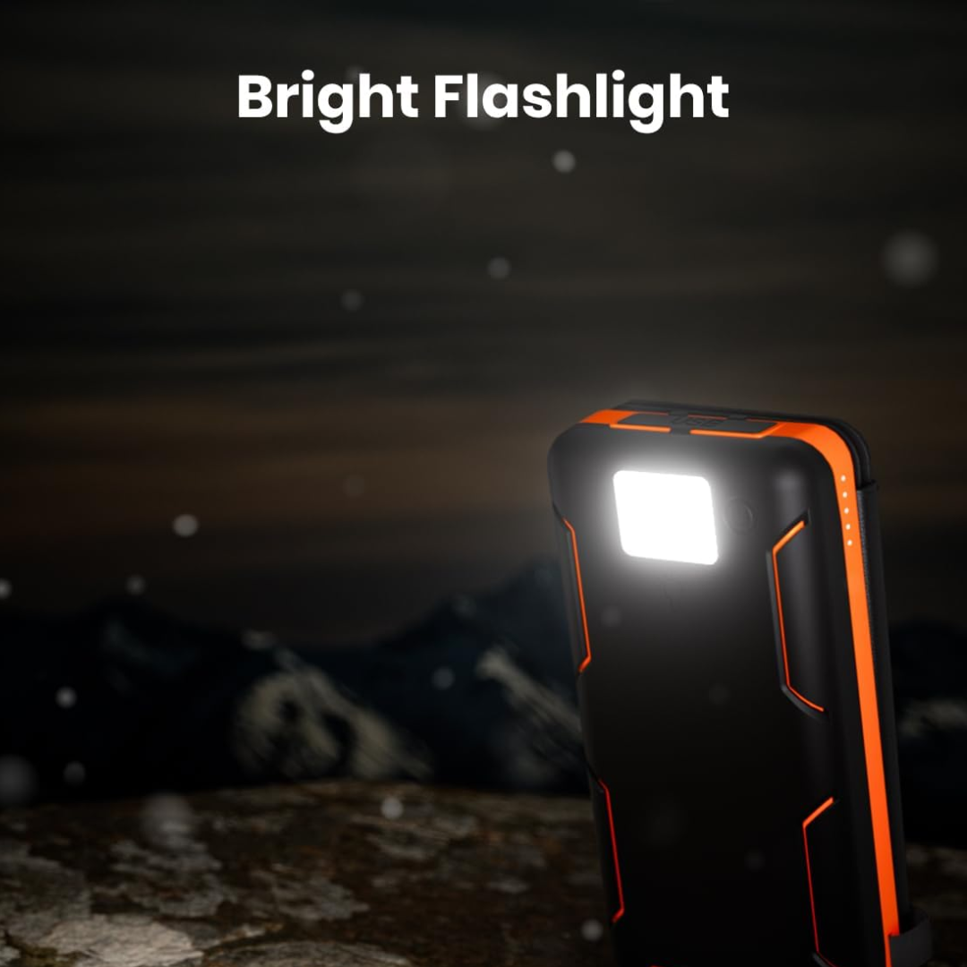 Charge 3 Devices at Once – USB-C + 2 USB-A ports, plus built-in LED flashlight for emergencies.