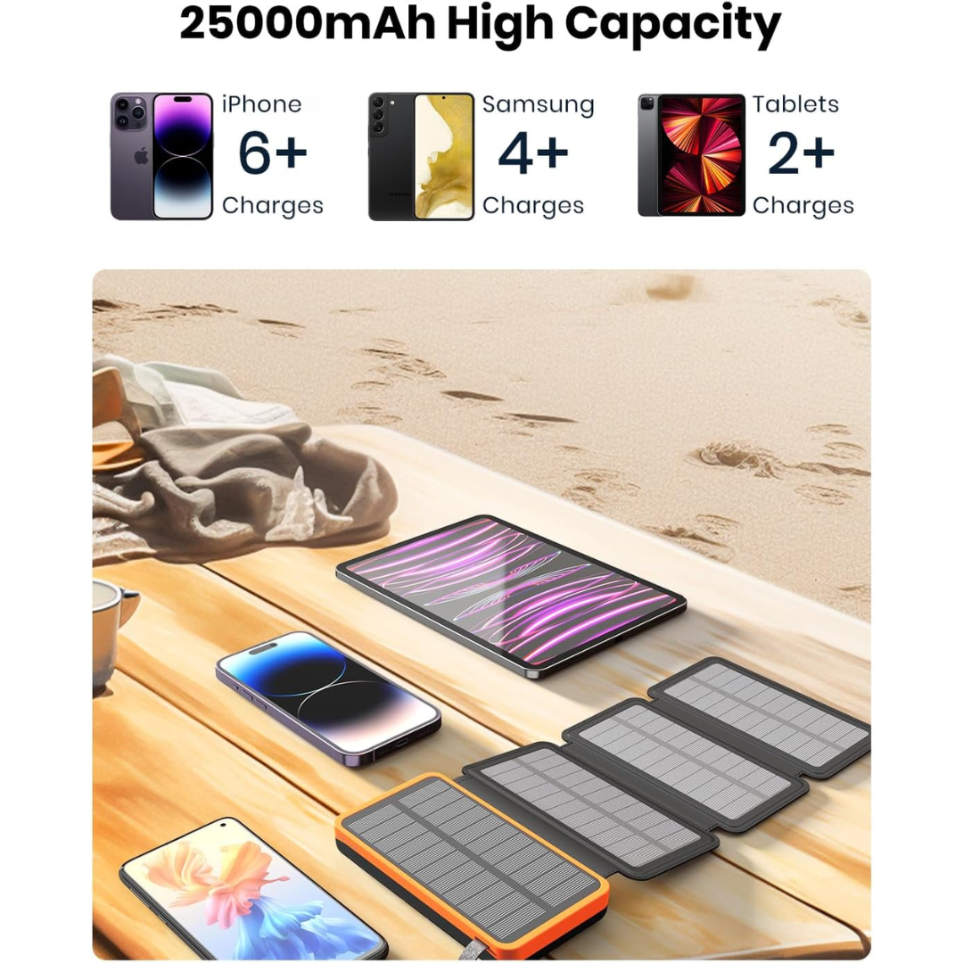 Massive 25,000mAh Capacity – Charges phones up to 7 times and tablets 3 times.