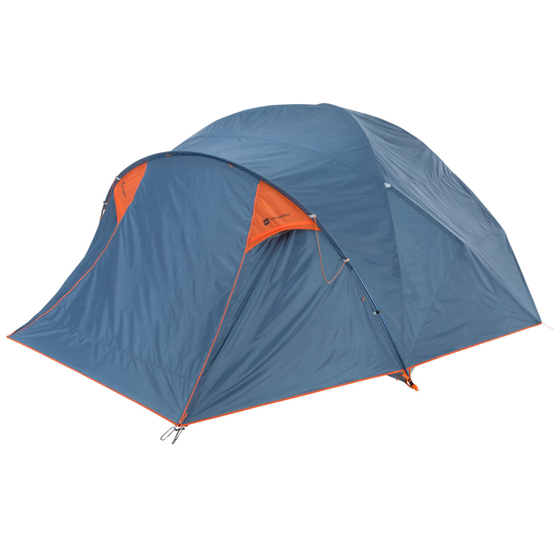 Five-person tent, or tiny mobile cabin? The Super Wanderer offers comfortable living space thanks to vertical walls and a vestibule that coverts to an awning. This tent is made for family trips and group camping. Colour-coded poles make it simple to set up. Internal stash pockets keep everyone's gear organized and accessible.